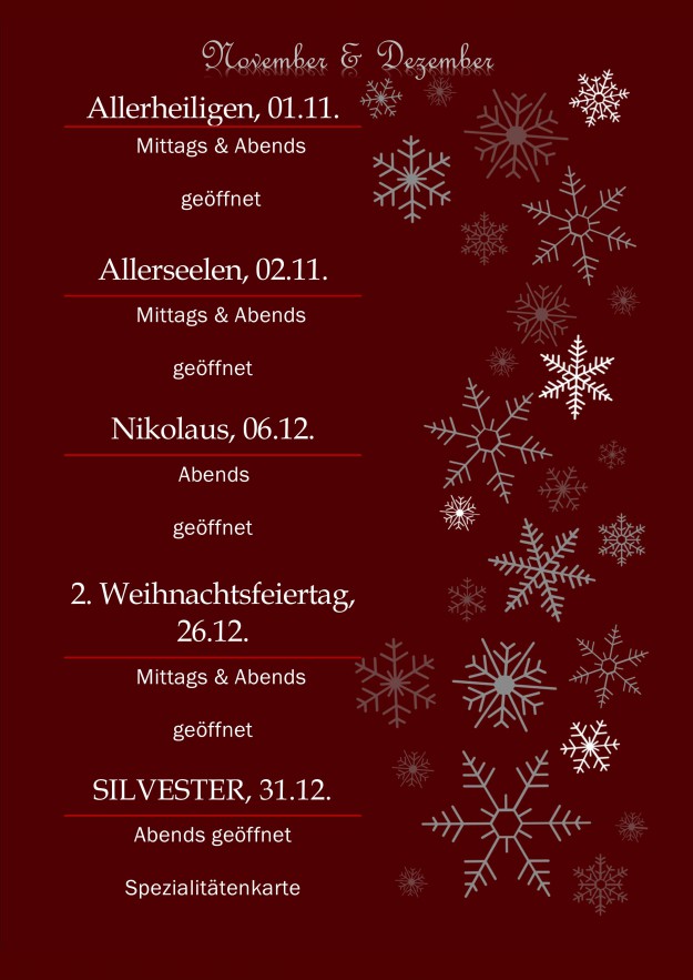 Unsere aktuelle Speisekarte finden Sie unter "Essen und Genießen"